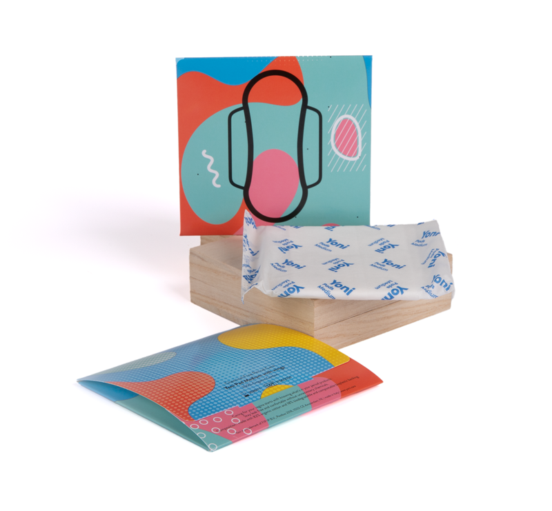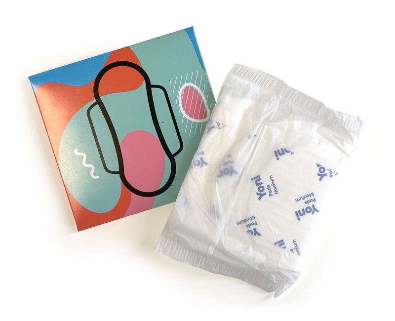 YONI maandverband van biologisch katoen en composteerbaar bioplastic, gemaakt in Italië.