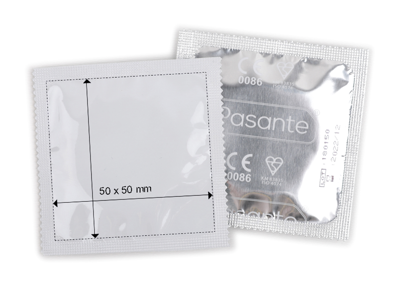 Afmetingen condoomverpakking: 60 x 59 mm